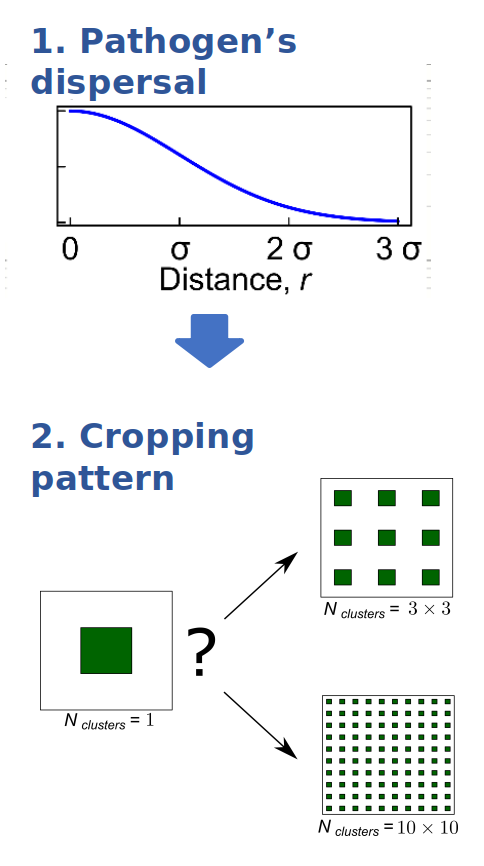 These models can be useful for developing tools that can assist farmers with making decisions on field size and spatial planting arrangement, when planting-out new fields and where they may wish to integrate control interventions.