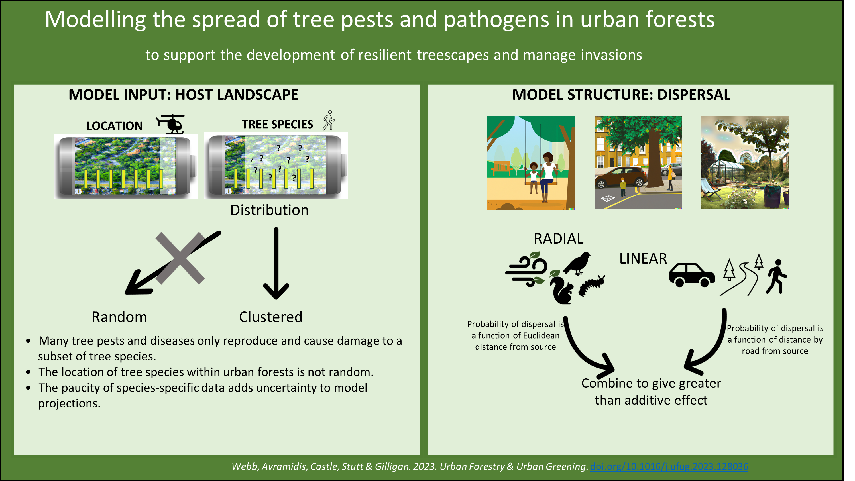 Webb, C.R., Avramidis, E., Castle, M.D., Stutt, R.O.H., Gilligan, C.A. 2023. Modelling the spread of tree pests and pathogens in urban forests. Urban Forestry & Urban Greening, 86, 128036 https://doi.org/10.1016/j.ufug.2023.128036