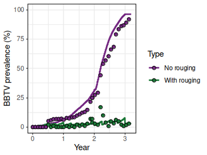 We are able to include additional management options (continuous provision of clean-seed, pesticide treatment) into the model which increases model robustness and accuracy for determining the benefits of introducing clean seed programmes under different farming systems.