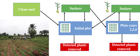 Despite the increasing use of the dissemination of disease-free planting material, it remains unclear how to optimise the potential of of clean-seed program for re-establishing production in disease endemic areas